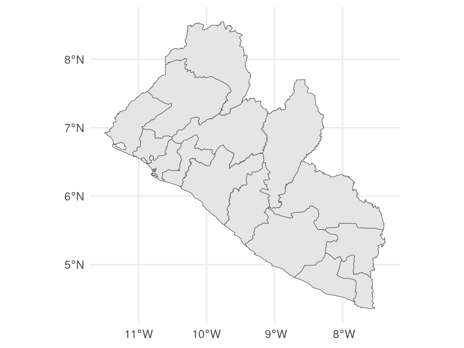 geom_sf(data = liberia_admin1, fill = NA, color = "black") +
