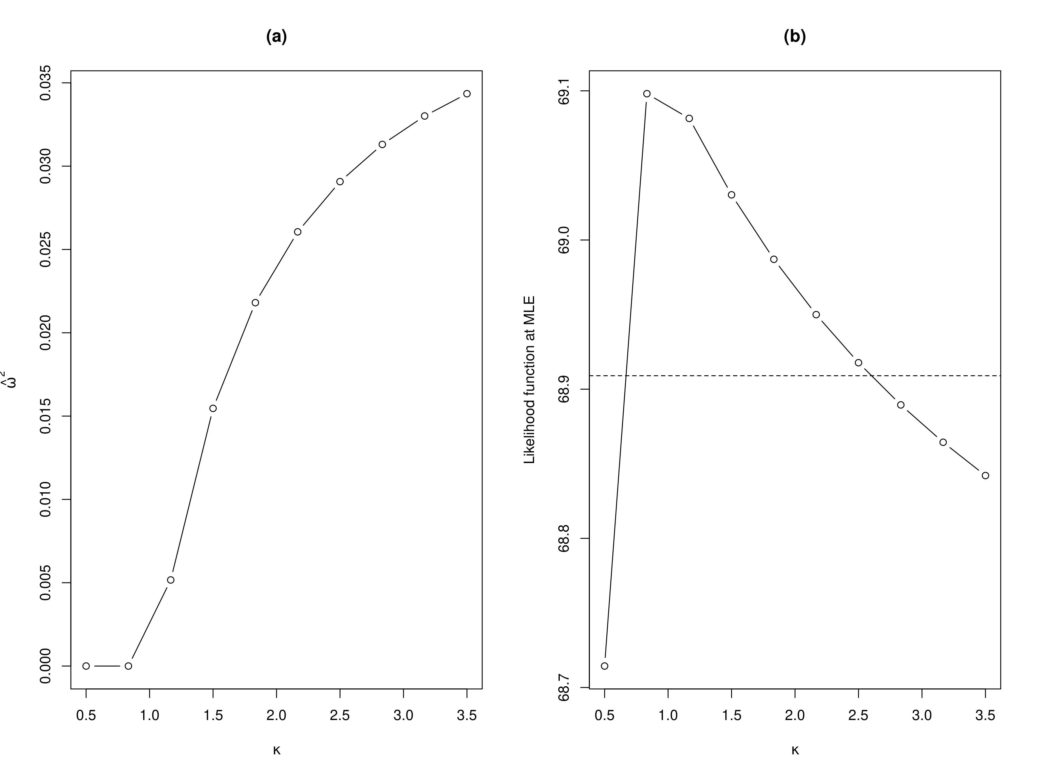 An alternative approach for setting initial guesses for the covariance parameters \(\sigma^2\), \(\tau^2\), and \(\phi\) is to apply an interpolation technique to the variogram, as proposed in the seminal work by N. Cressie (1985). However, in our experience, this approach does not consistently provide better approximations of the likelihood function compared to the method mentioned above. This may be due to the instability in estimating the variogram based on residuals from mixed models, as well as the sensitivity of empirical variogram estimation to the chosen distance bins.
