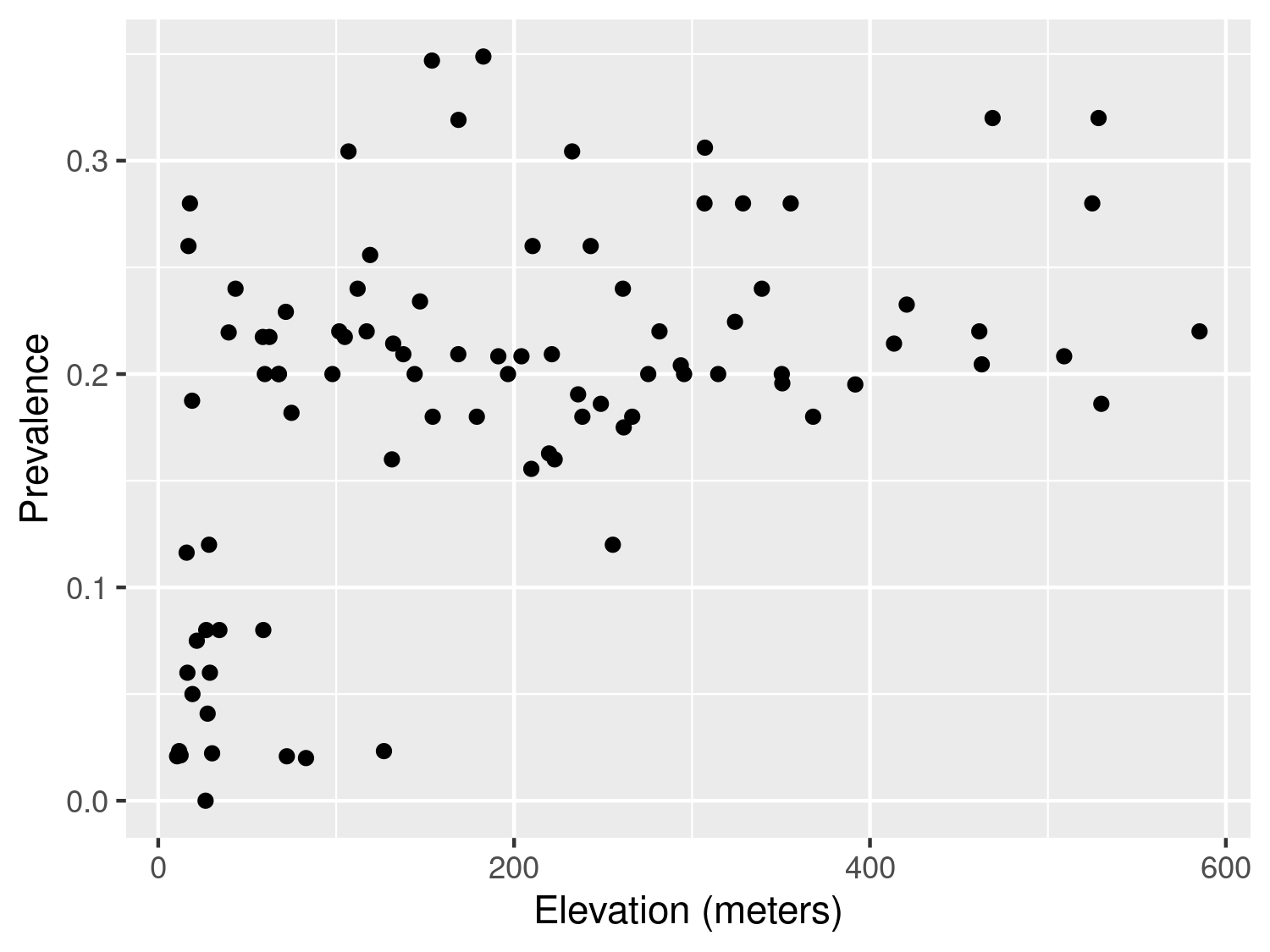 labs(x="Elevation (meters)",y="Prevalence")